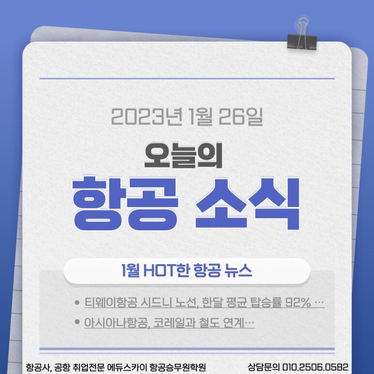 [대구승무원학원 항공News] 오늘의 항공소식은? (0) | 2023.01.20 |