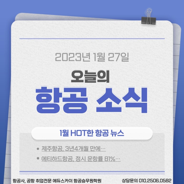 | 대구승무원학원 항공News, 오늘의 항공소식은? (0) | 2023.01.26 |