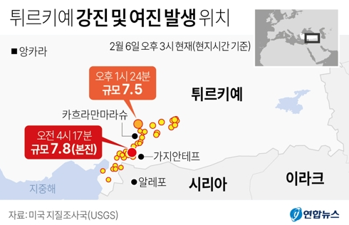 진앙인 가지안테프는 400㎞ 이상 떨어져 있는데요