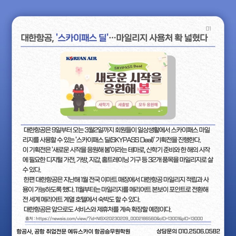 항공사 하계시즌 준비 현황, 대구 승무원학원이 전하는 오늘 항공이슈 (0) | 2023.02.13 |