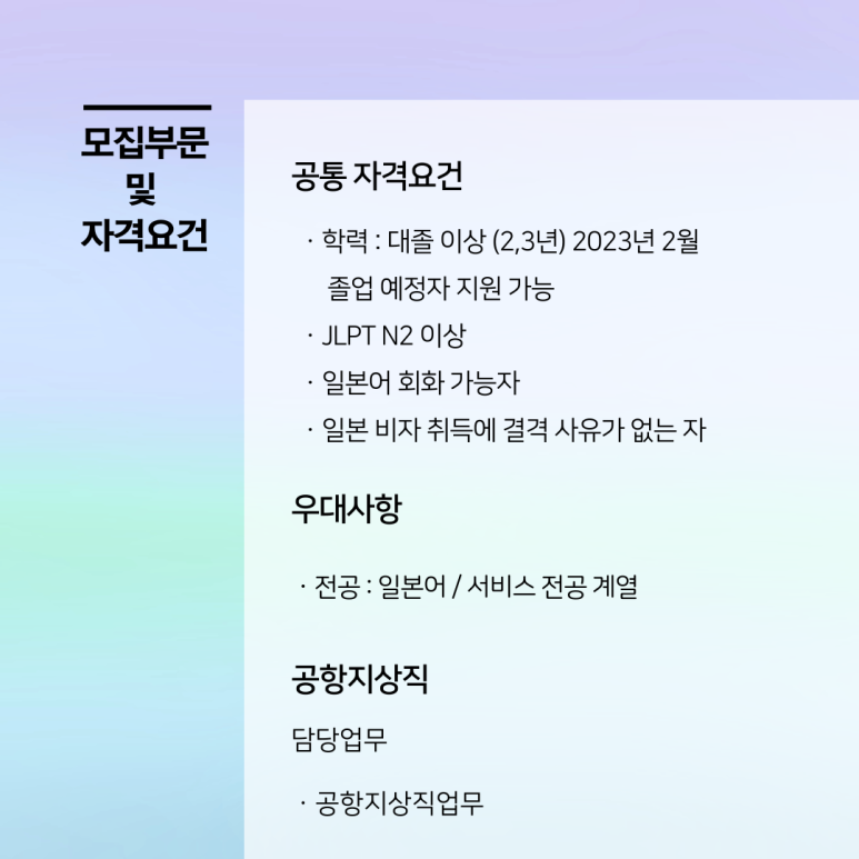일본어, 서비스 전공계열자를 지원 우대합니다.